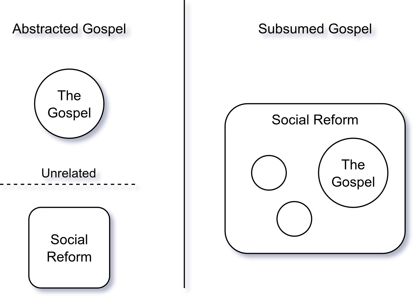 An abstracted Gospel denies God’s power and presence: it is reduced to a concept or ideal. Meanwhile a subsumed Gospel denies God’s authority: it is reduced to a method for exerting our own power and presence in this world.4